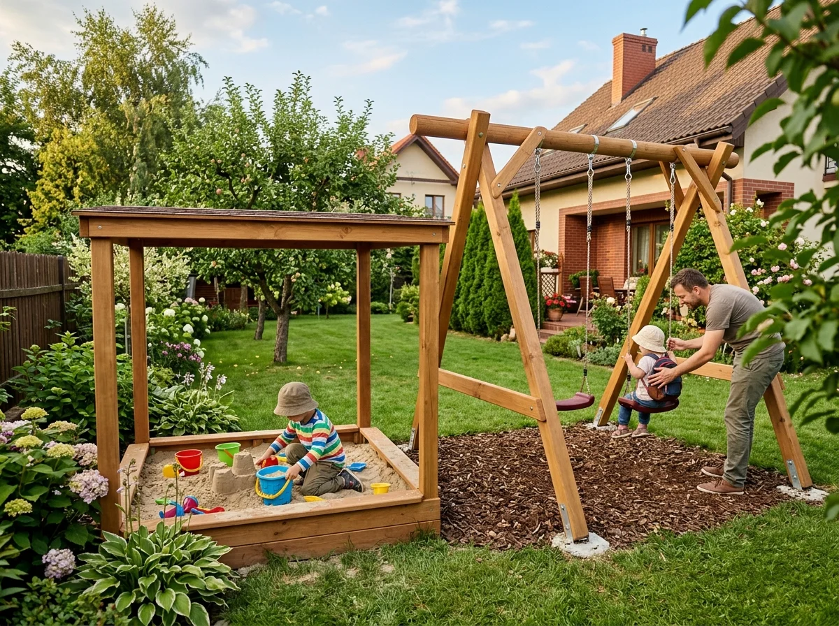 Bezpieczna strefa zabaw dla dzieci w ogrodzie: Jak wybrać i zamontować huśtawki oraz piaskownice?