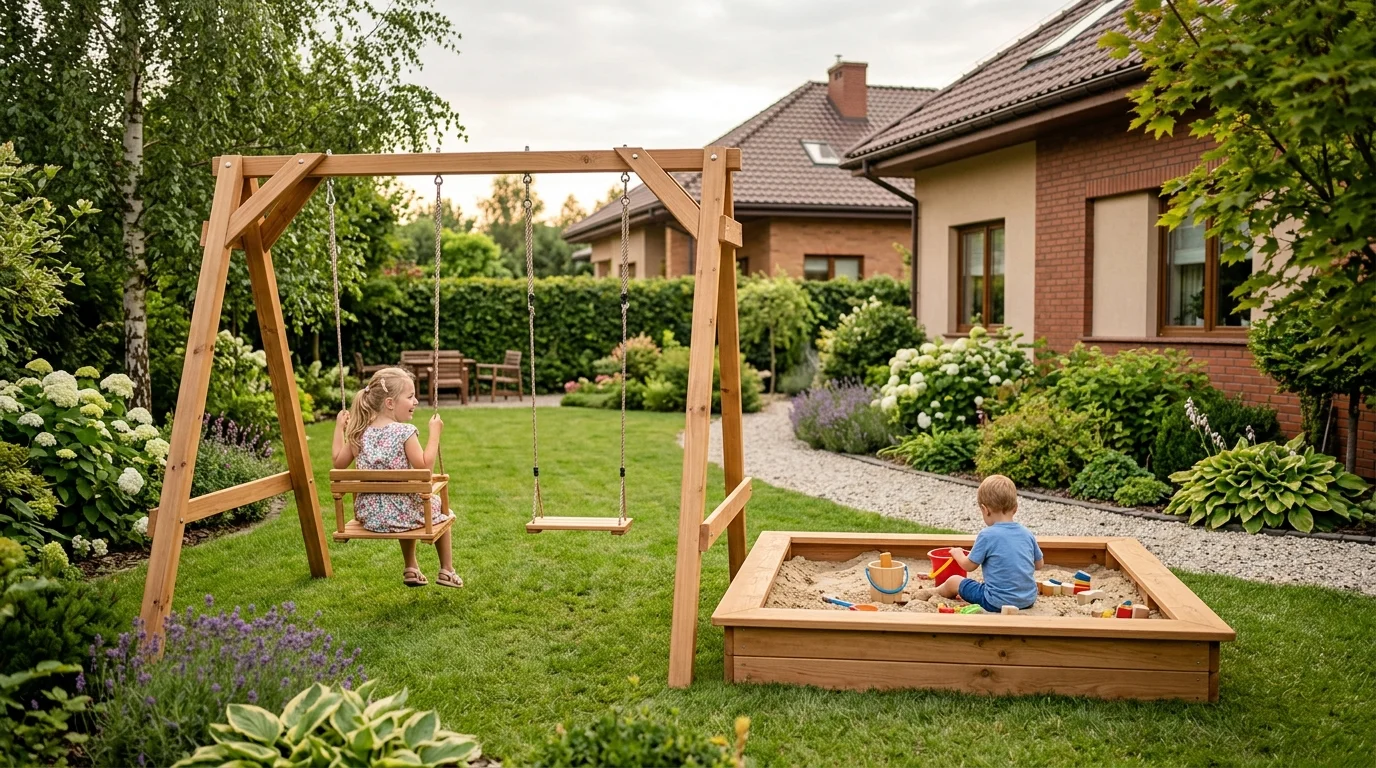 Bezpieczna strefa zabaw dla dzieci w ogrodzie: Jak wybrać i zamontować huśtawki oraz piaskownice?