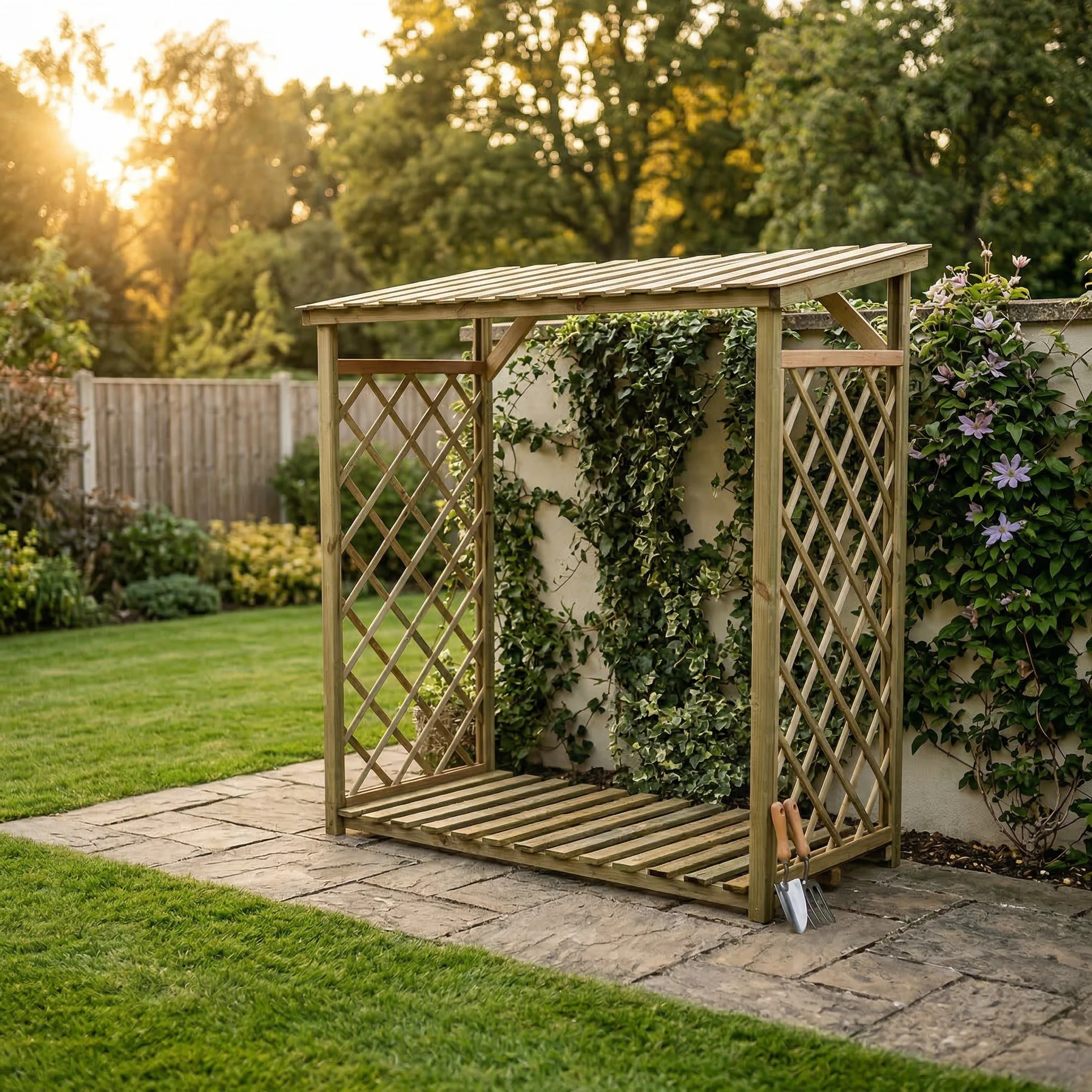Drewutnia ogrodowa Tom-Drew: Pojemne składowanie drewna z nutą zieleni.
