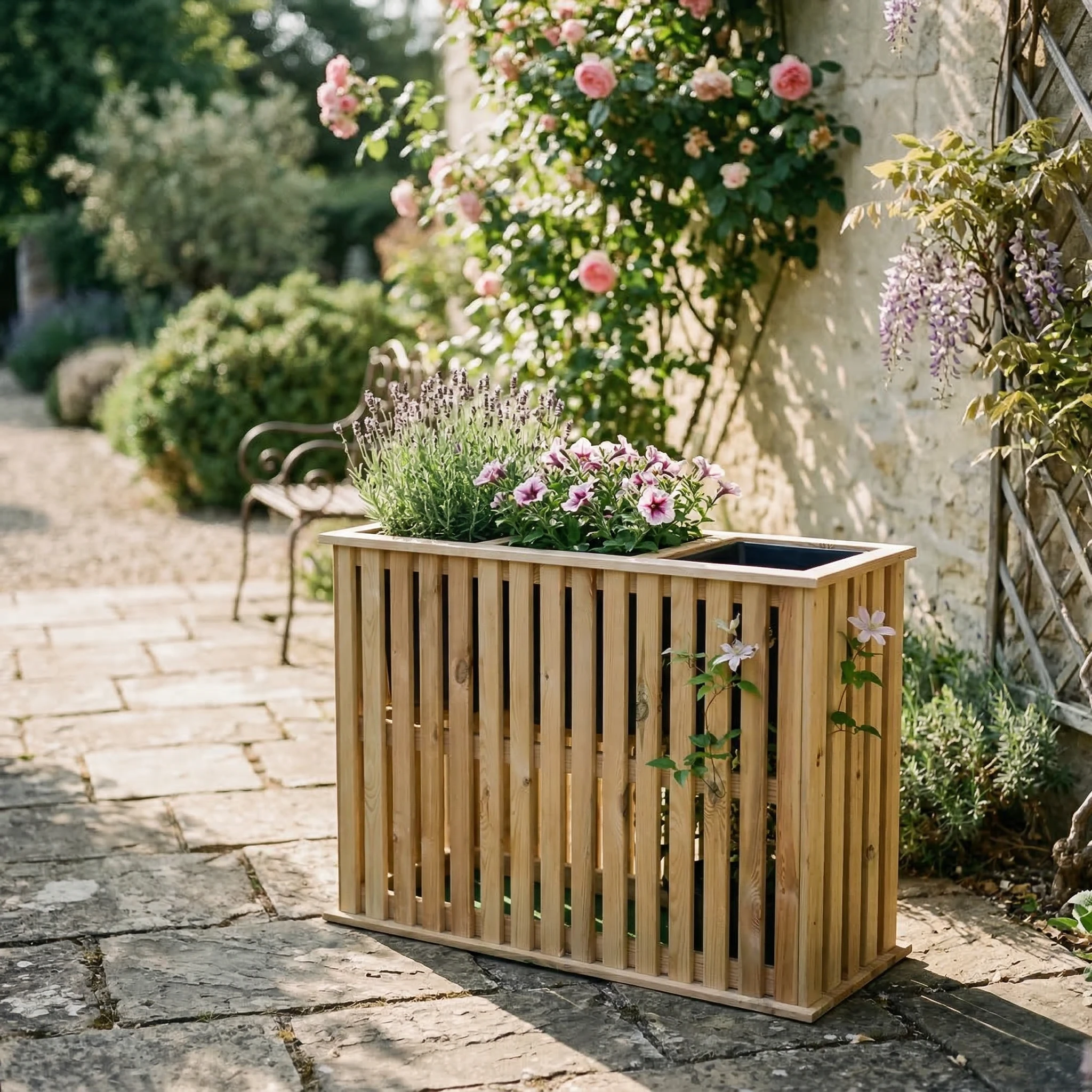 Nasza donica lamelowa pionowa potrójna została zaprojektowana z myślą o długotrwałym użytkowaniu i estetyce. Wykonana z wysokiej jakości drewna sosnowego, przeszła proces impregnacji ciśnieniowej na kolor zielony. Ta zaawansowana metoda obróbki drewna zapewnia doskonałą odporność na warunki atmosferyczne, takie jak deszcz, słońce czy zmienne temperatury, a także chroni przed szkodnikami i procesami gnilnymi. Dzięki temu donica zachowa swój atrakcyjny wygląd i funkcjonalność przez wiele sezonów, bez konieczności częstej konserwacji. Dołączony plastikowy wkład ułatwia sadzenie roślin i dodatkowo zabezpiecza drewnianą konstrukcję.
