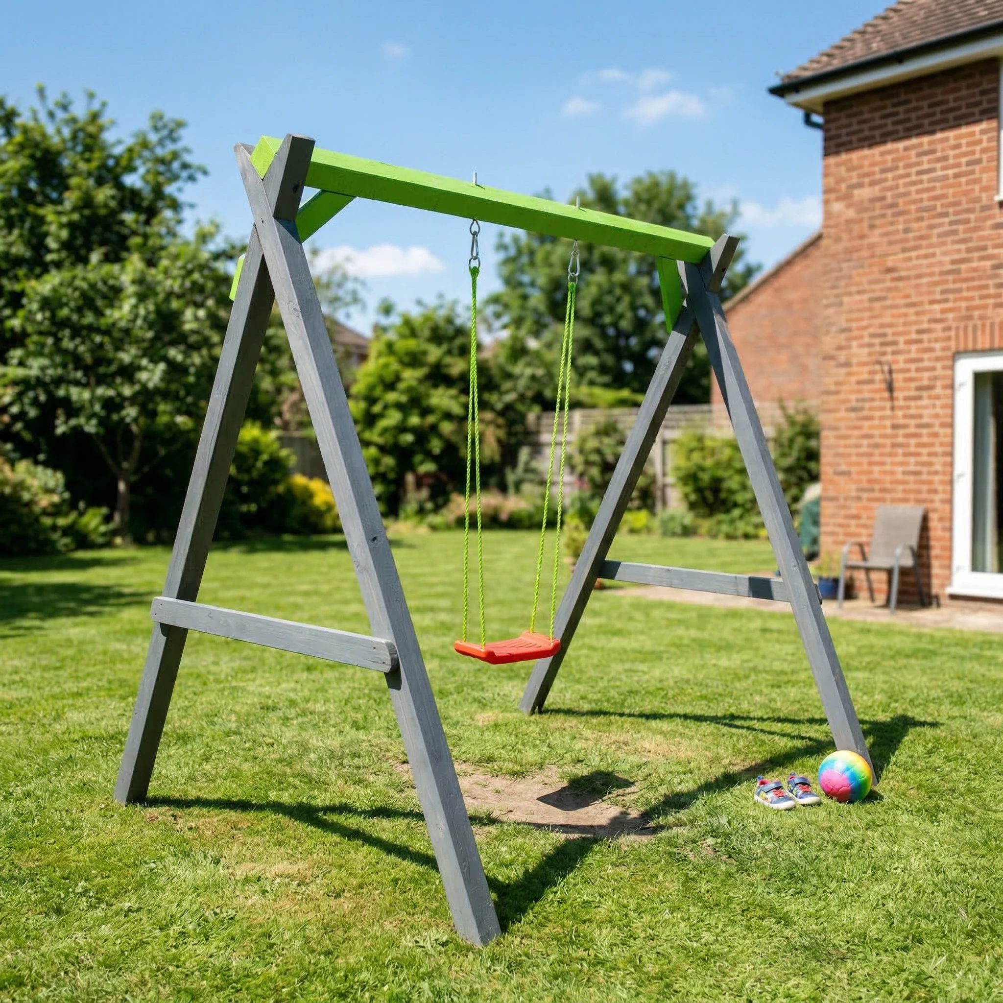 Huśtawka OLEK została zaprojektowana z myślą o trwałości i bezpieczeństwie, co jest priorytetem w przypadku produktów dla dzieci. Jej solidna konstrukcja, dostosowana do intensywnego użytkowania, zapewnia stabilność podczas każdej zabawy. Fakt, że huśtawka jest malowana, świadczy o dodatkowej warstwie ochronnej, która pomaga zachować jej estetyczny wygląd przez długi czas, zarówno pod wpływem słońca, jak i innych czynników atmosferycznych w ogrodzie. Wybór wysokiej jakości materiałów, choć niewyszczególnionych, jest kluczowy dla producenta, co przekłada się na bezpieczne i komfortowe użytkowanie przez najmłodszych.