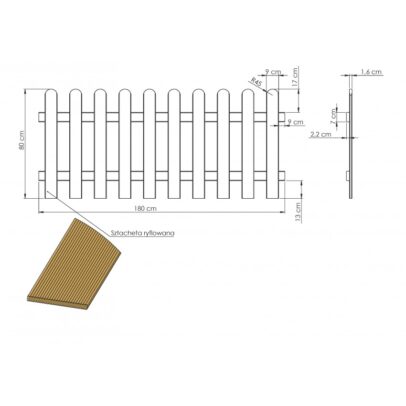 Sztachety maja wymiar 90×16 mm, rygle 20×70 mm